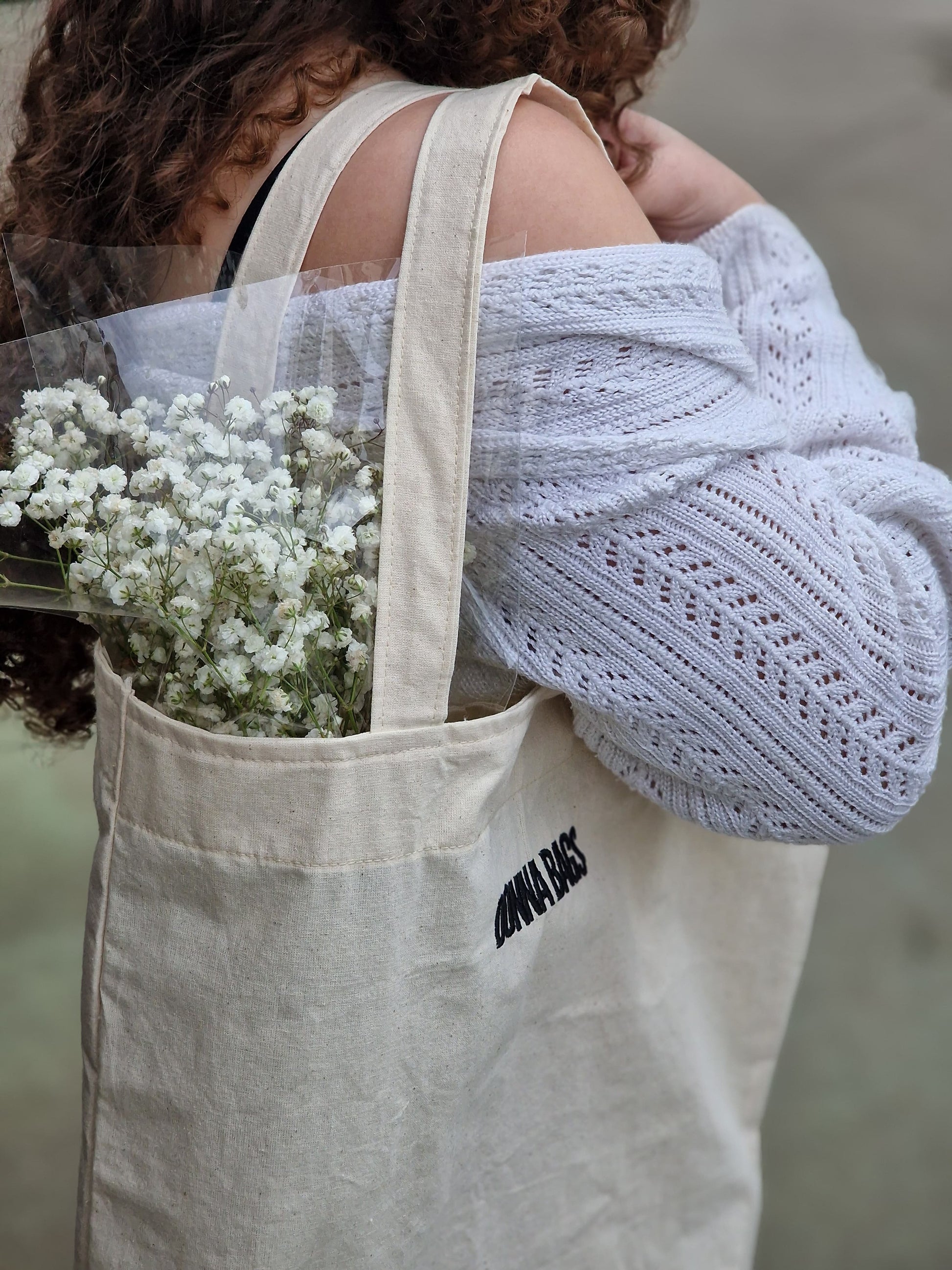 EcoBag em tecido de algodão. Exterior personalizado com logo bordada.
