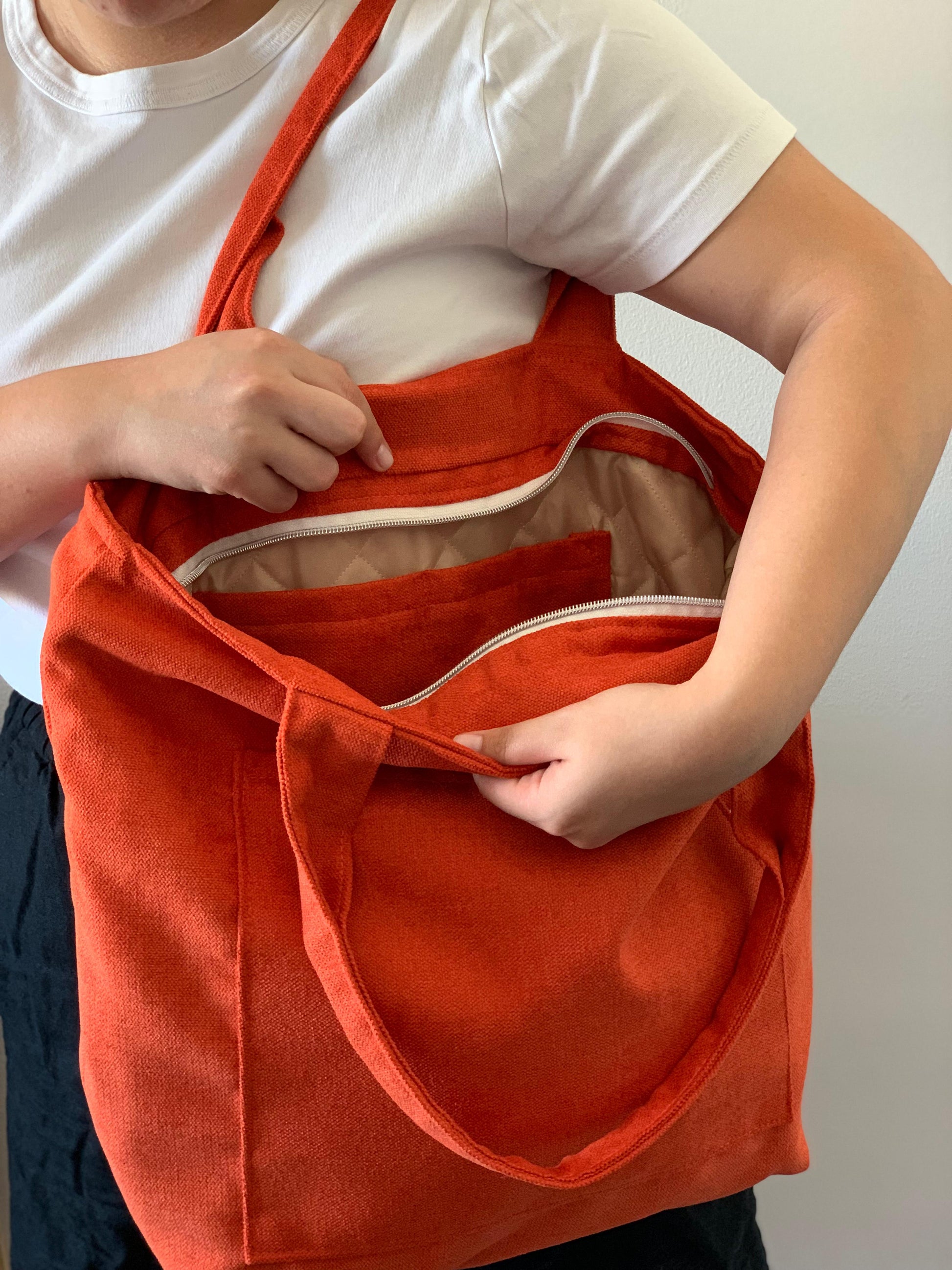 Mala de ombro em veludo rústico com bolso externo e bolso interno. Forro acolchoado. Fecho com zíper metálico.